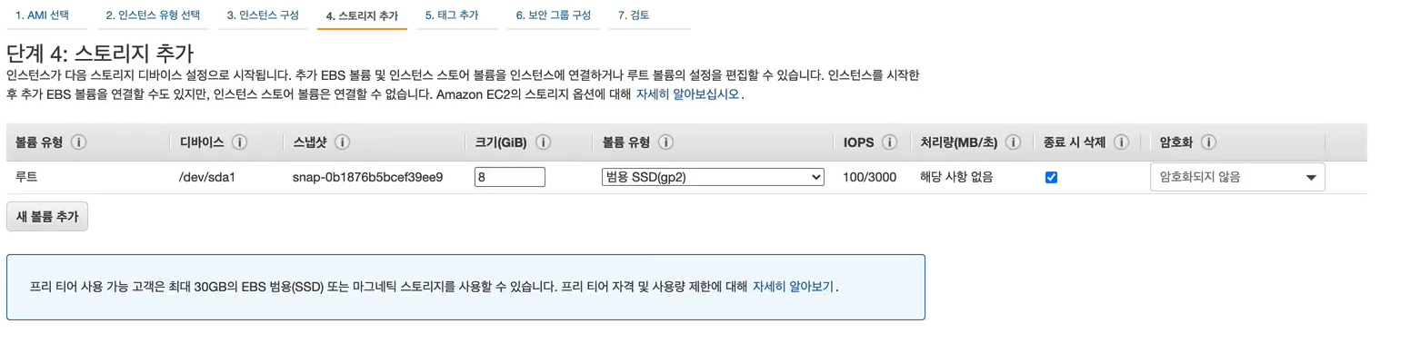 - 단계 4: (스토리지 추가) 저장장치의 크기를 나타낸다